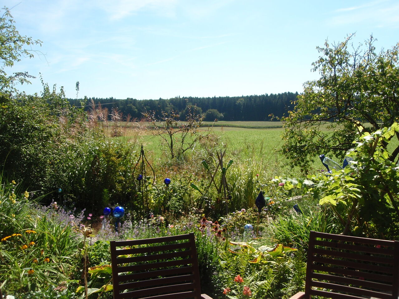 Rodungsinsel und ist ringsum mit Wald umgeben.